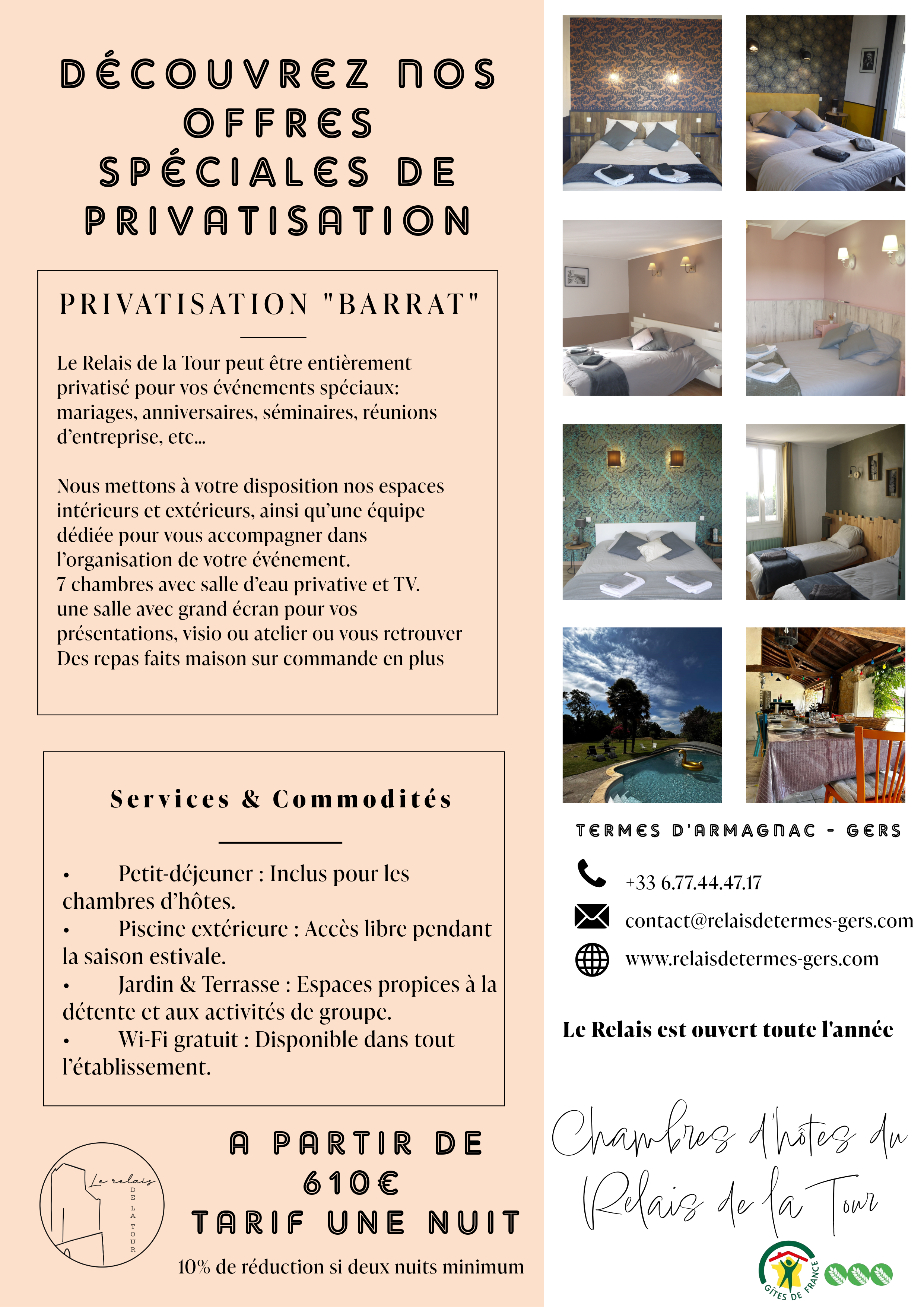 📞 Información y reservas directamente con el Relais de la Tour.